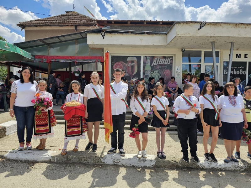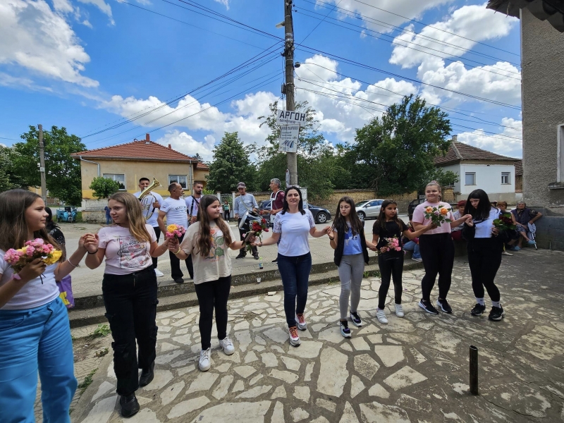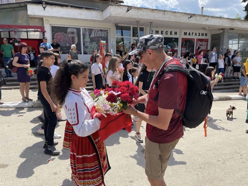 С цветя и развети знамена, възпитаници на ОУ ”Отец Паисий” с. Софрониево, ОУ "Христо Ботев" с. Крушовица и ОУ "Цанко Церковски " гр. Мизия посрещнаха походниците, участващи в 76-ия поход по стъпките на Ботев и неговата чета.