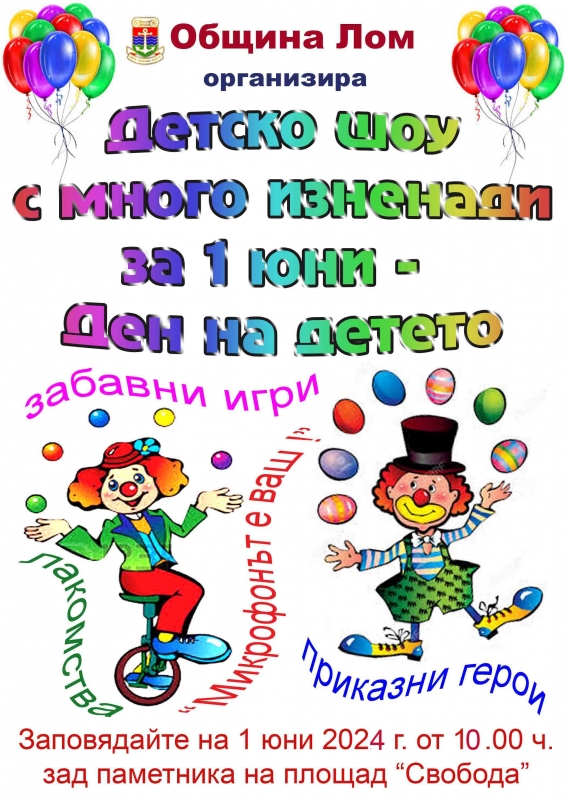 Детско шоу подарява община Лом на най-малките жители на общината по случай празника им.