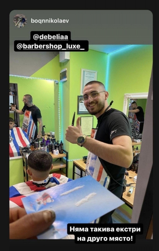 Вчера на фейсбук страницата на бръснарницата е качено потресаващо стори. На него се вижда как собственикът подстригва, докато някой му подава наредени линии бяло прахообразно вещество.