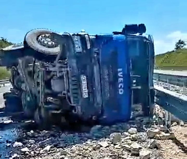 Сефтосаха го! Камион се обърна и затвори новия скоростен път във Видинско /снимки/
