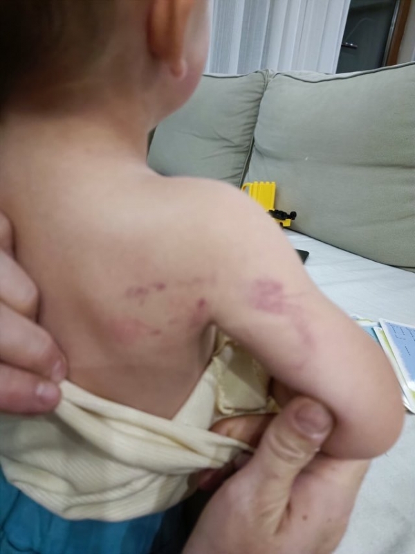 Майката разказа пред наш репортер, че това не е първият подобен случай. Детето ѝ посещавало яслата едва 1 месец, но през това време отново видяла малка синина на крачето му. Тогава обаче не реагирала, тъй като при малки деца подобни инциденти са възможни.