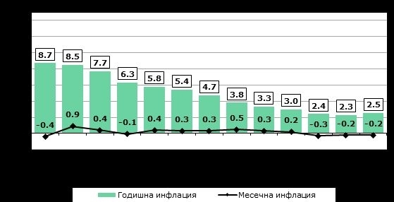 Месечната инфлация е -0.2%, а годишната инфлация за юни е 2.5%. Това съобщиха от Националния статистически институт (НСИ).