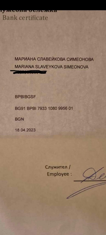 IBAN: BG91BPBI79331080995601