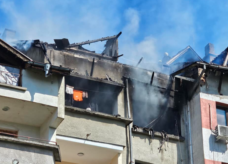 Припомняме, че на 4 юли огнена стихия унищожи покрива на блок 6, вход „А“, в ж.к. „Изгрев“ в Монтана. При пожара бяха спасени две деца, а семейството вече не е там.