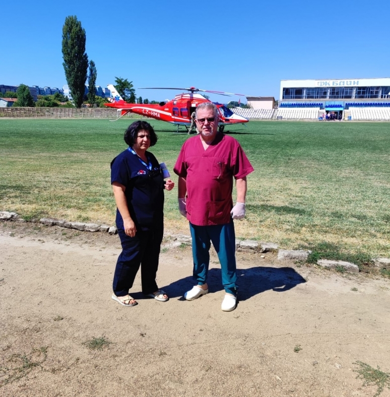 Подаден бил сигнал в районния координационен център на въздушния медицински транспорт, откъдето след заседание мисията била одобрена. Жената била приета в спешното, след което е докарана с линейка на стадион „Георги Бенковски“. Полицията отцепила района, за да може медицинският хеликоптер да кацне безаварийно, след което пациентката била натоварена и екипът излетял към София.