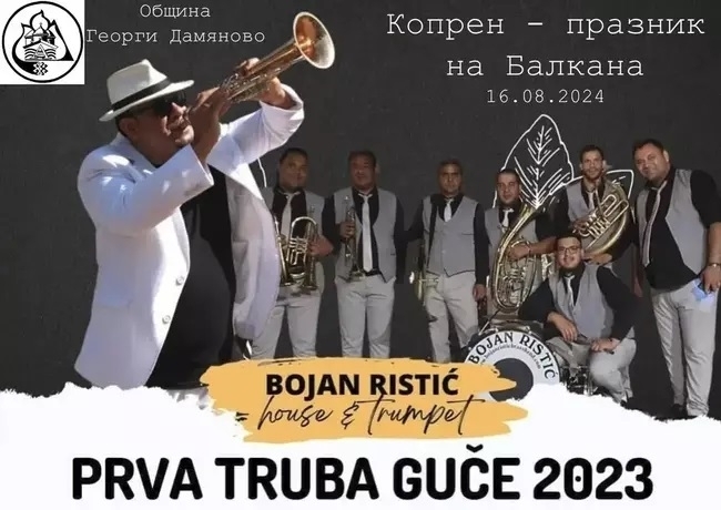 Програмата ще започне от 16 август в петък край хижа “Копрен” с концерт на Боян Ристич брас бенд – известен победител през годините на Драгачевски събор на трубачите – Гуча (Сърбия).