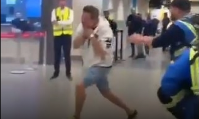 В стряскащ видеозапис от инцидента се вижда как мъжът бяга от полицията и се препъва, докато служителите на реда се опитват да го зашеметят с електрошок. Българският гражданин успява да избяга през зоната за регистрация на летището, преди полицията в крайна сметка да го арестува и той да бъде откаран в медицински център за спешно лечение.
