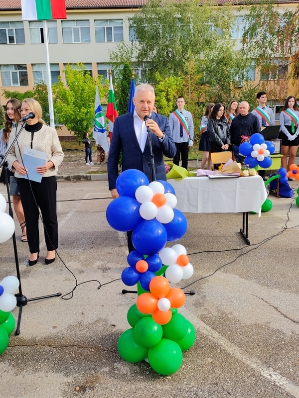 В приветствието си кметът Калин Каменов се обърна към учениците с апел да бъдат отговорни към учебния процес, единни и подкрепящи се във взаимоотношенията си, а учителите да са строги и изискващи.