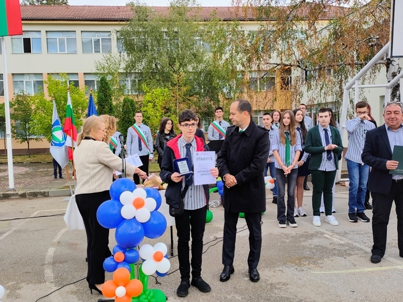 Тържеството продължи с официалното връчване на отличия „Ученик на годината по предмети за постигнати високи резултати на национални олимпиади и състезания през изминалата учебна година. Наградите бяха връчени от градоначалника Калин Каменов.