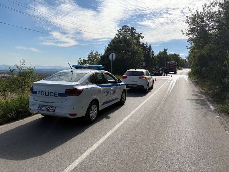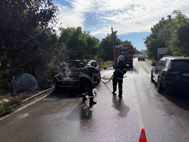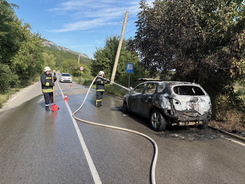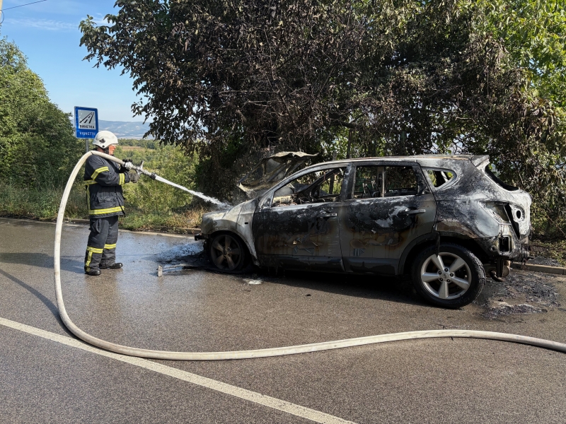 Инцидентът е станал преди минути край село Челопек. Лек автомобил „Нисан Кашкай“ се запалил и е изгорял напълно.