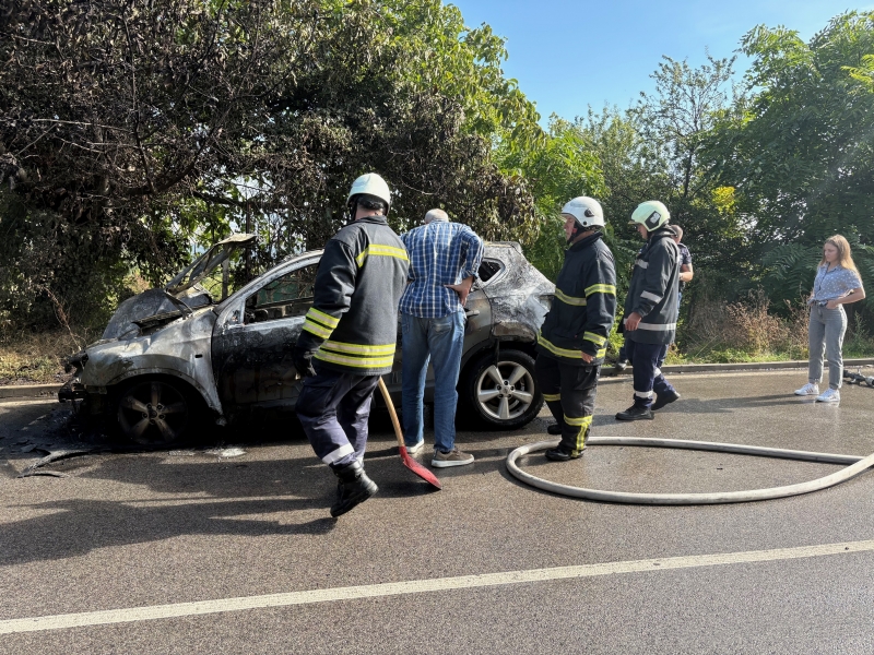 Те веднага подали сигнал на тел. 112. На място пристигнали полиция и пожарна, но колата е унищожена напълно.