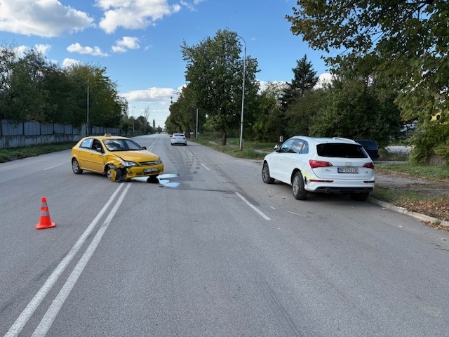 Такси е ударило паркирана кола във Враца, научи ексклузивно агенция BulNews.