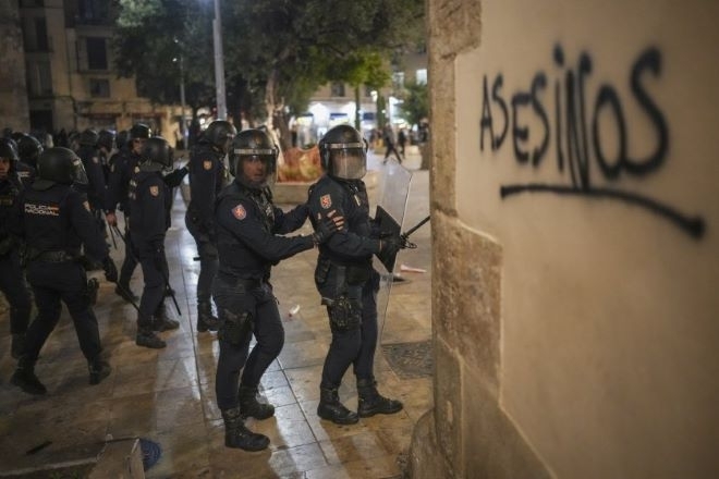 По време на снощната демонстрация във връзка с наводненията протестиращите изпълниха центъра на Валенсия, издигнаха искане за оставката на ръководителя на регионалното правителство Карлос Масон и скандираха "Убийци!".