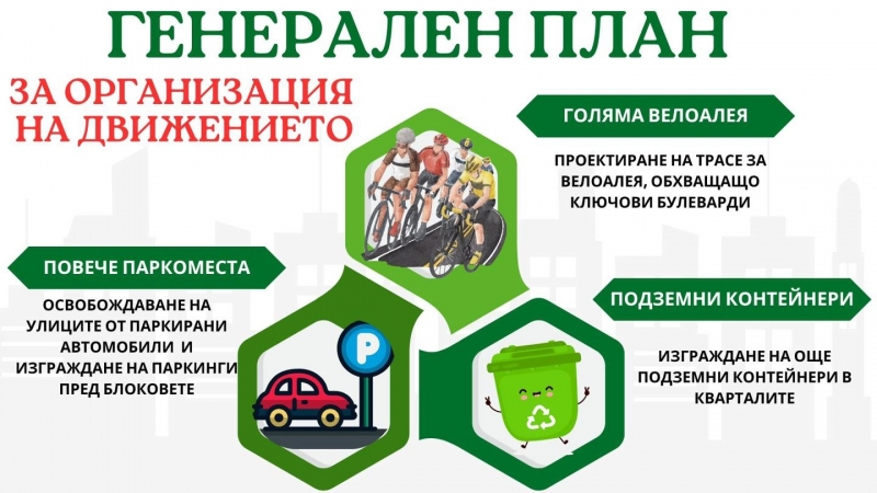 Освен велоалея, при разработването на Генералния план ще се предвиди разширяване на паркингите пред жилищните сгради в кварталите, чрез: