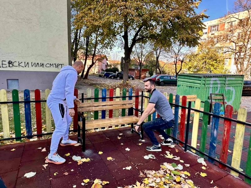 "Днес обещаните пейки вече са поставени, а площадката е готова да посреща жителите на квартала, които разполагат с обновено и поддържано място за отдих.