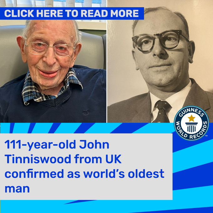 Най-възрастният човек в света, британецът Джон Тинисууд, е починал на 112 години в дома за възрастни хора, в който е живял в Саутпорт. Това става ясно от информация на „Рекордите на Гинес”, откъдето цитират семейството на мъжа. Тинисууд е роден в Ливърпул на 26 август 1912 г. Той стана най-възрастният човек в света през април след смъртта на 114-годишния венецуелец Хуан Висенте Перес.
