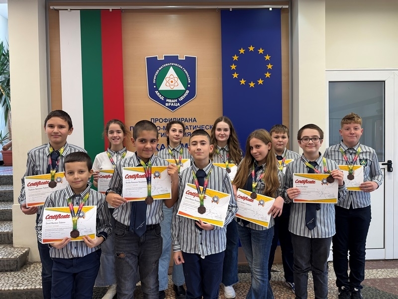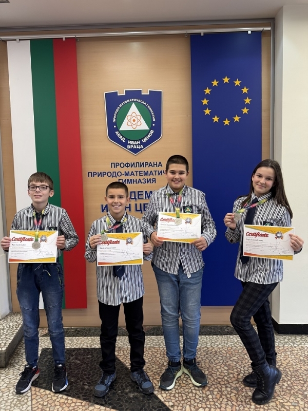 Младите математически таланти от ППМГ „Акад. Иван Ценов“ – Враца отново донесоха куп отличия от есенния кръг на Международния турнир „Математика без граници“. Учениците от 5 до 10 клас завоюваха общо 4 златни, 5 сребърни и 10 бронзови медали.