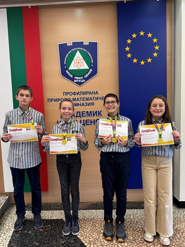 Със златен медал и първо място в състезанието бяха отличени: Ния Тодорова Тодорова (5 клас), Иван Тодоров Костадинов (5 клас), Даниел Владимиров Коловски (6 клас) и Ния Георгиева Шкетиева (6 клас).