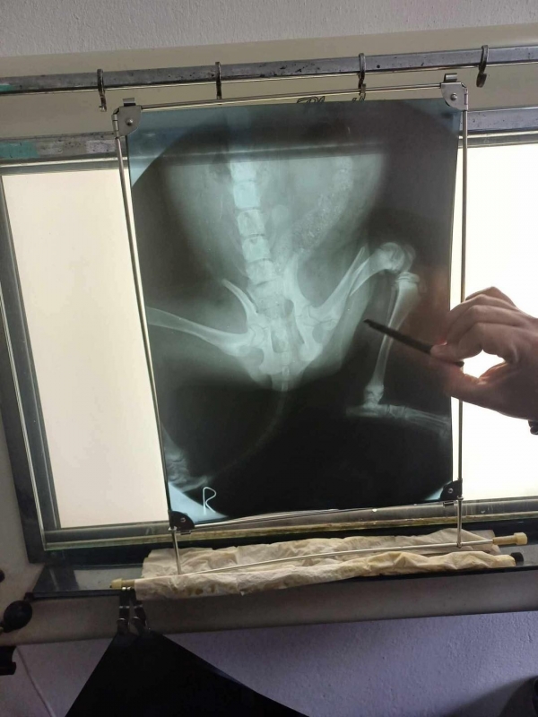 За щастие обаче свидетели на случилото се има. Благодарение на бързата реакция на Цвети Анатолиева, която е видяла случката и която ни потърси за помощ, успяхме да отидем бързо на мястото, да хванем бебето и да го заведем на ветеринар. Било на системи и ще остане при нас докато му заздравее крачето. Бебето се е разминало само със счупен крак, което можете да видите на снимката.
