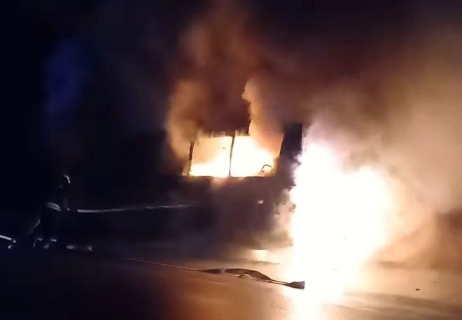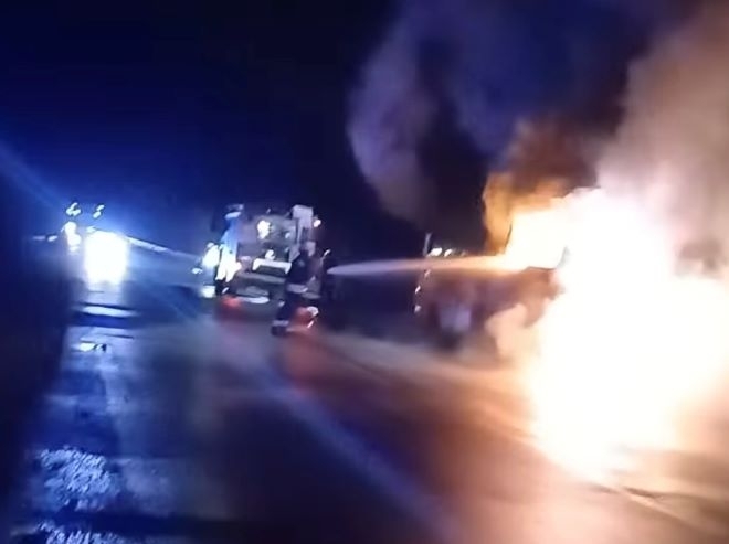 За щастие, няма пострадали хора, но ТИР-ът е унищожен напълно.