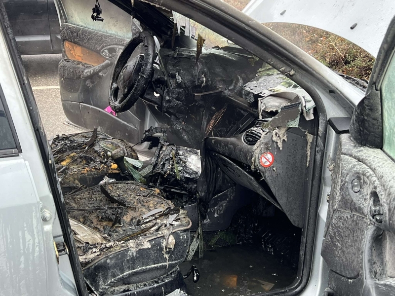 Всичко в купето на колата е изгоряло напълно, а прозорците са се изпочупили от горещината. По двигателния отсек и ходовата част обаче няма почти никакви поражения. Като по чудо и паркираните в близост коли не са засегнати от огнената стихия.
