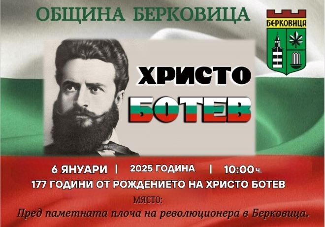 Берковица ще отбележи годишнина от рождението на Христо Ботев