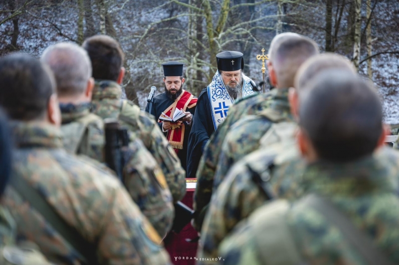 Преди ритуала бяха осветени бойните знамена на Военно формирование 54 990, с командир подполковник Симеон Гаджев.