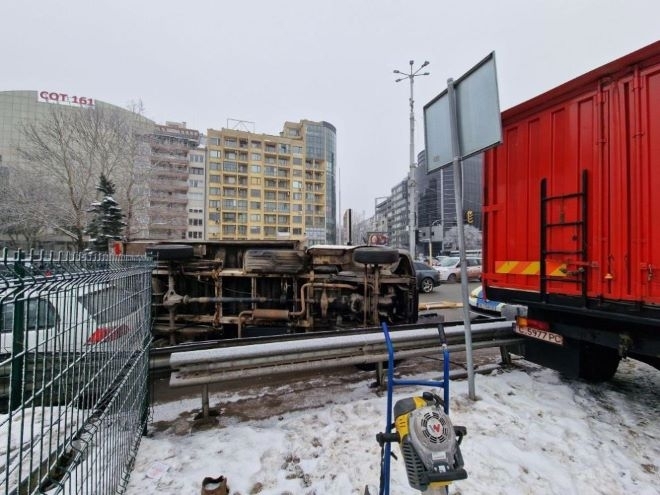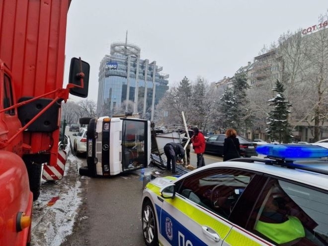Бус се обърна на кръстовището на булевард „България" и булевард „Гоце Делчев" в София. Това стана ясно от публикации във фейсбук групата "Катастрофи в София".