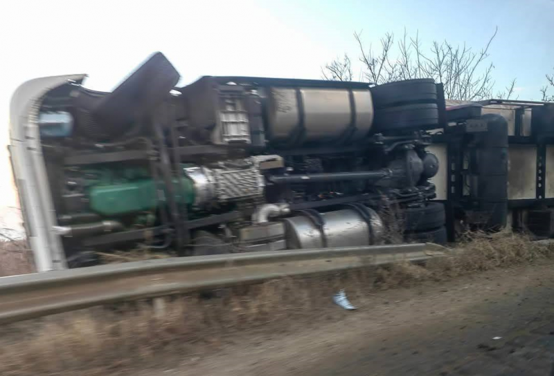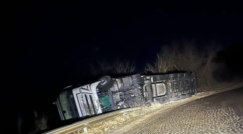 Пътният инцидент е станал около 2 часа тази нощ. Водач на турски ТИР се движил от Козлодуй в посока Лом, когато на входа на крайдунавския град се обърнал странично извън пътя.