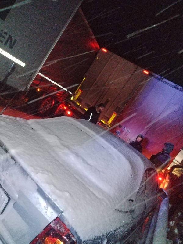 Според информация на медията ни, бил аварирал ТИР. Заради непочистения и неопесъчен път обаче, в него се забил лек автомобил, който бил управляван от жена. Няколко секунди по-късно в колата се натресъл друг ТИР, който, по думи на шофьорката, забил возилото ѝ в мантинелата. В това време отзад идвал друг влекач с прикачено полуремaрке. Шофьорът не успял да реагира навреме и да овладее тежкотоварната машина и се забил в камиона пред него. За капак в третия камион се ударил четвърти ТИР, като, вследствие на зрелищния инцидент, ТИР-овете се спрели един до друг, сякаш са паркирани на пътя.
