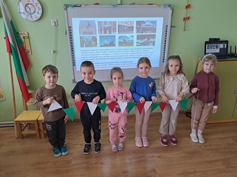 Проведените ритуали през февруари тази година насочиха децата към придобиване на чувства за принадлежност към детската група и детската градина, възприемайки характерните за тях символи – лого, знаме и униформа. Овладяването на културни и национални ценности от децата в трета и четвърта група бе насочено към осмисляне съдържанието на думата „Родина“. Запознавайки ги със символите на държавността, с картата на България и нейните забележителности, децата осмислиха своята българска националната идентичност. Участието на подрастващите в организираните активности ги възпитава в патриотичен дух и родолюбие.