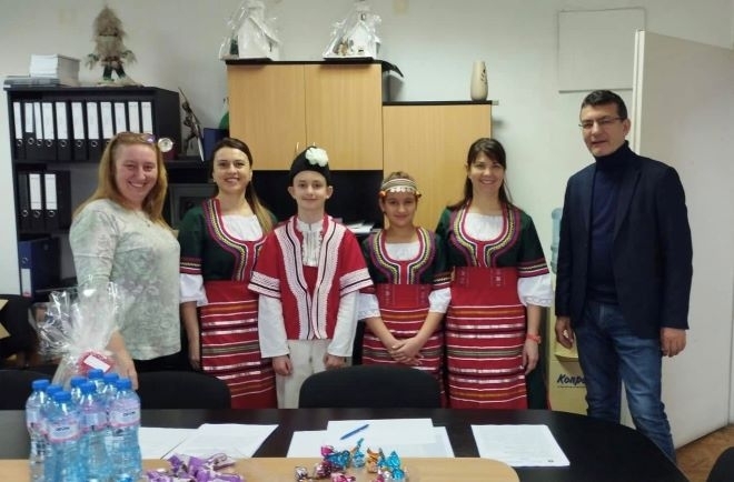 Кметът Златко Живков, председателят на Общински съвет инж. Иво Иванов и секретарят на общината Мариус Конов бяха поздравени от децата за предстоящия празник – 1 март Баба Марта със стихове и първомартески сувенири.
