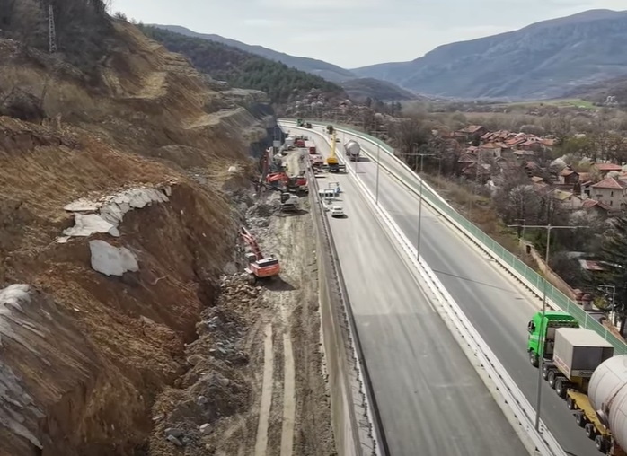 Активно се работи по укрепването на свлачищата, възникнали по трасето. Едно от най-сериозните от тях е в района на пътен възел „Ребърково“, а другото – в местността "Копяновец". На видеото се вижда как кипи усилен труд, но видимо има още доста работа.