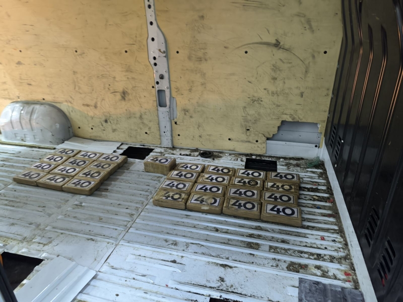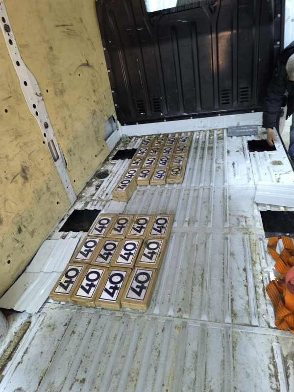 Превозното средство е отклонено за щателна проверка. При извършеното сканиране на автомобила са открити нетипични плътности в тайник, специално изграден в двоен под по цялата дължина на товарното помещение, облицован с оловна ламарина.