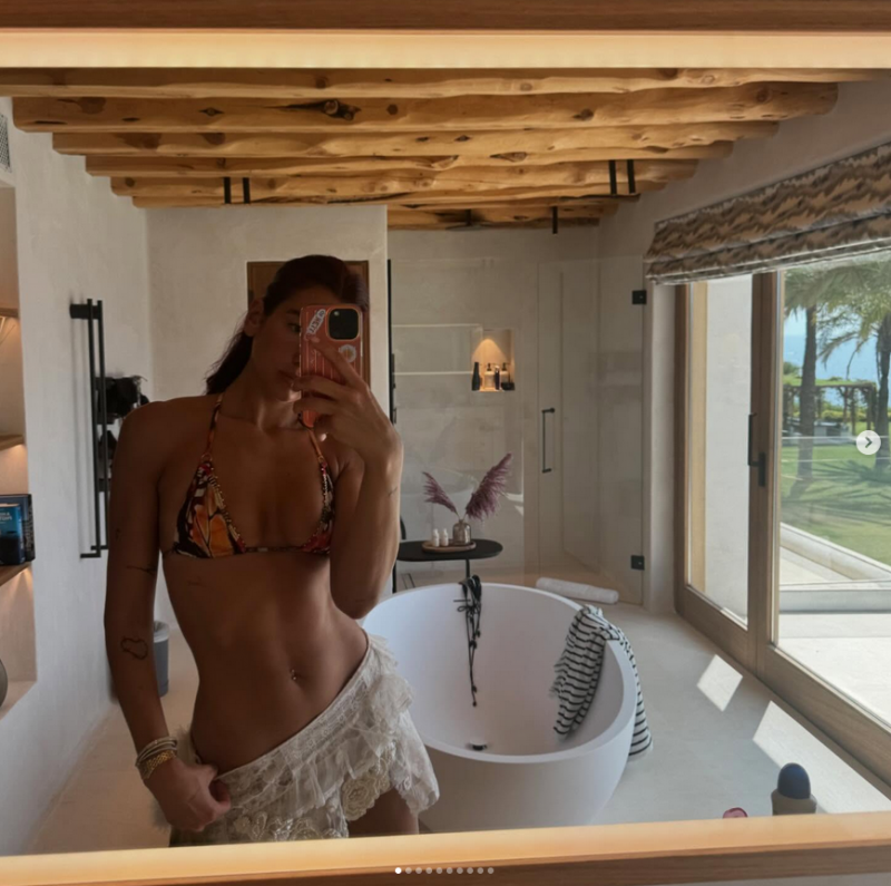 29-годишната звезда публикува фотографии, на които се появява в малък бански от две части, състоящ се от ниска талия и сутиен.