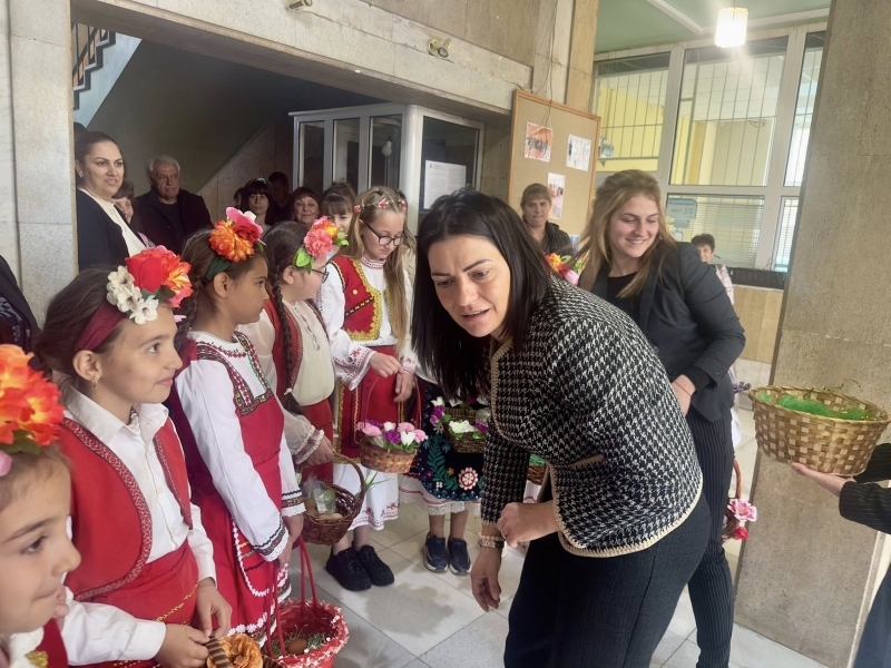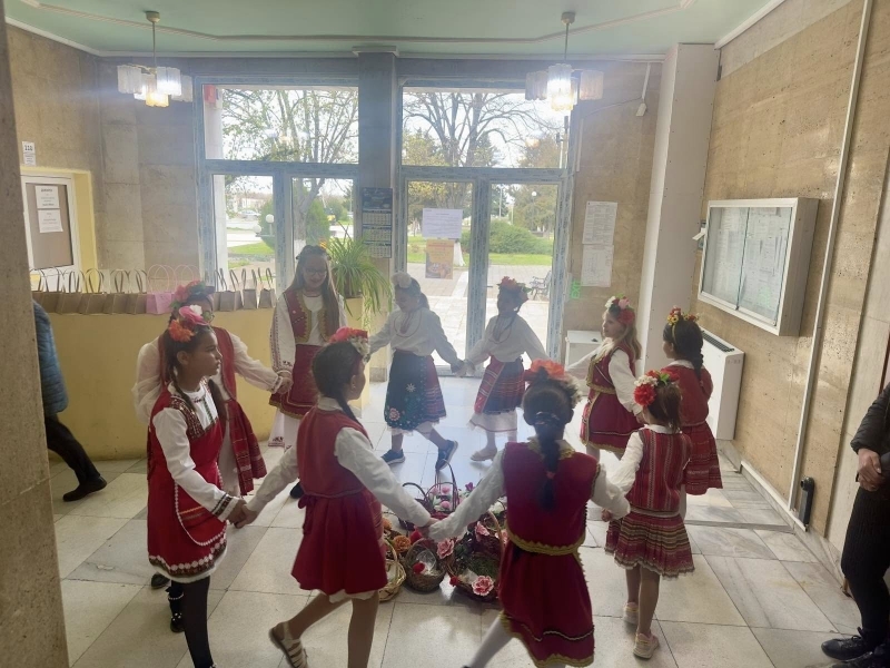 Днес в Общинска администрация – Мизия има радостта да посрещне лазарки от Основно училище „Христо Ботев“ – село Крушовица. Заедно с директора на училището Дарина Стоянова и преподавателя Светла Василева, децата ни зарадваха със своето присъствие и празнично настроение.