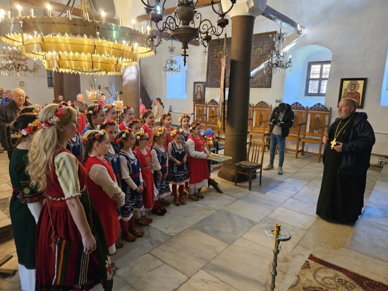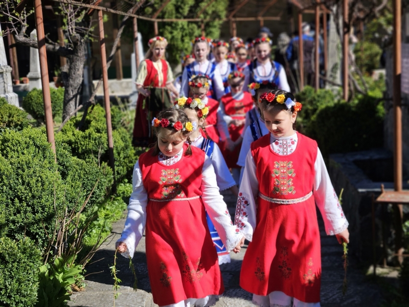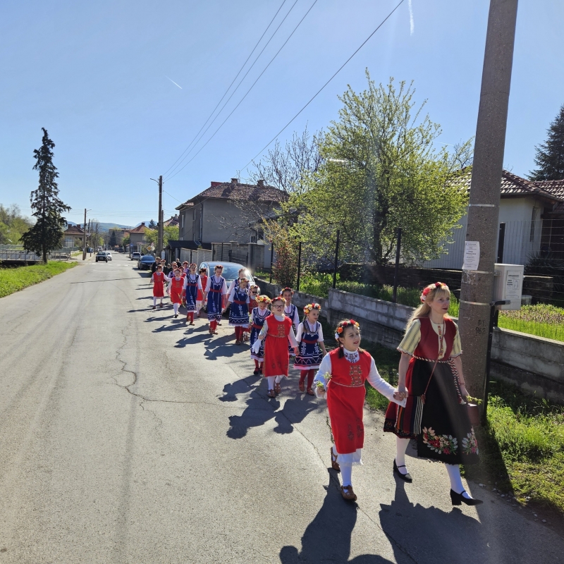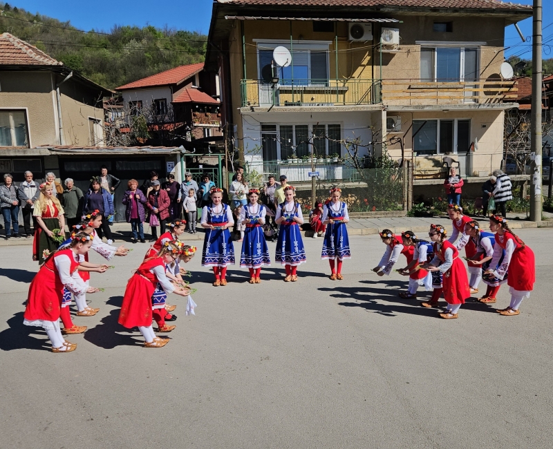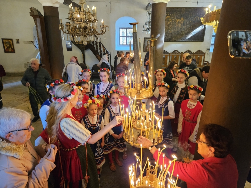 Денят започна по традиция с венчета от върбови клонки, закичени по вратите – символ на здраве и ново начало. Младите моми, лазарували предишния ден, посетиха храм „Рождество Богородично“, където отец Захарий Радин отправи благослов към всички:
