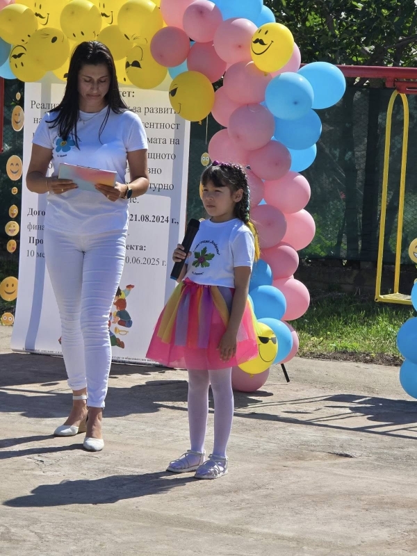 Събитието бе детски празник под надслов „Усмивка“ и бе организирано съвместно с родителската общност, педагогическия екип и представители на местната общност. Празникът отбеляза успешния завършек на 10-месечната проектна дейност, реализирана в периода от 1 септември 2024 г. до 30 юни 2025 г.