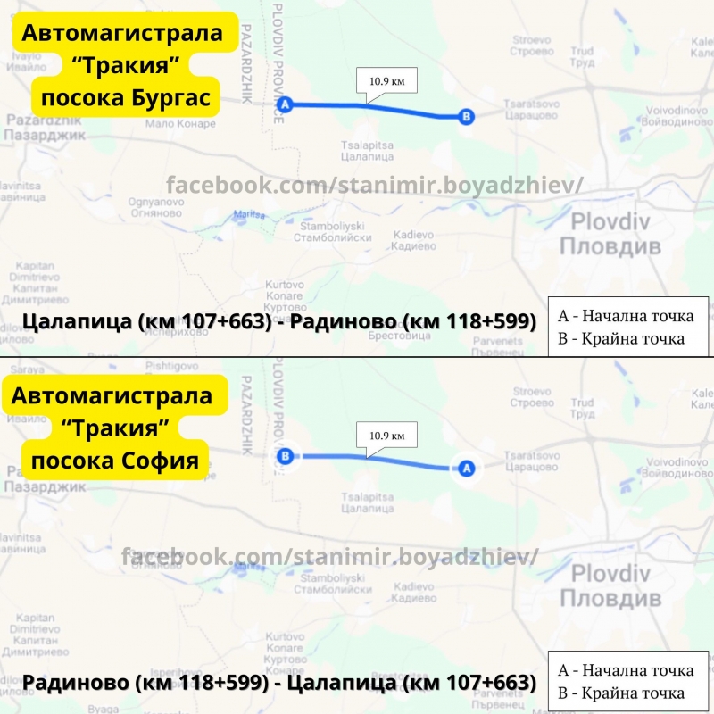 – 22-километров участък, разположен между възел Пазарджик и възел Цалапица