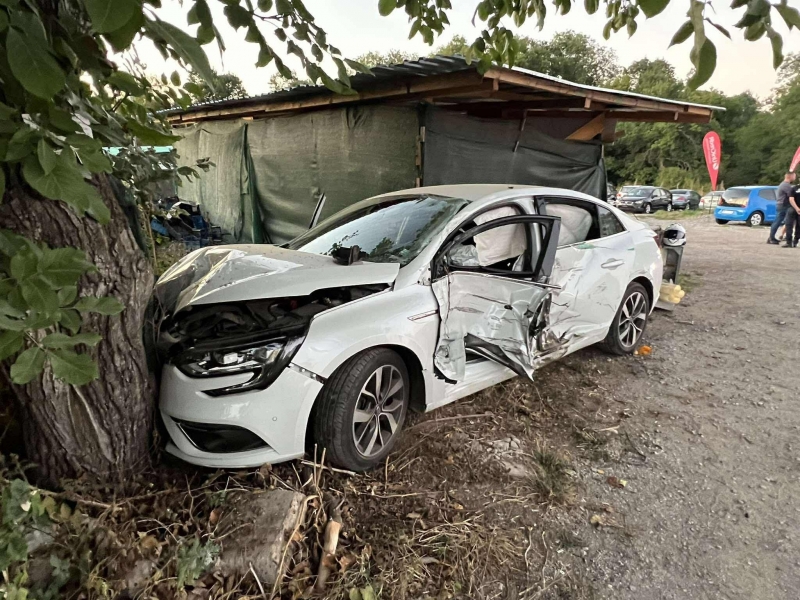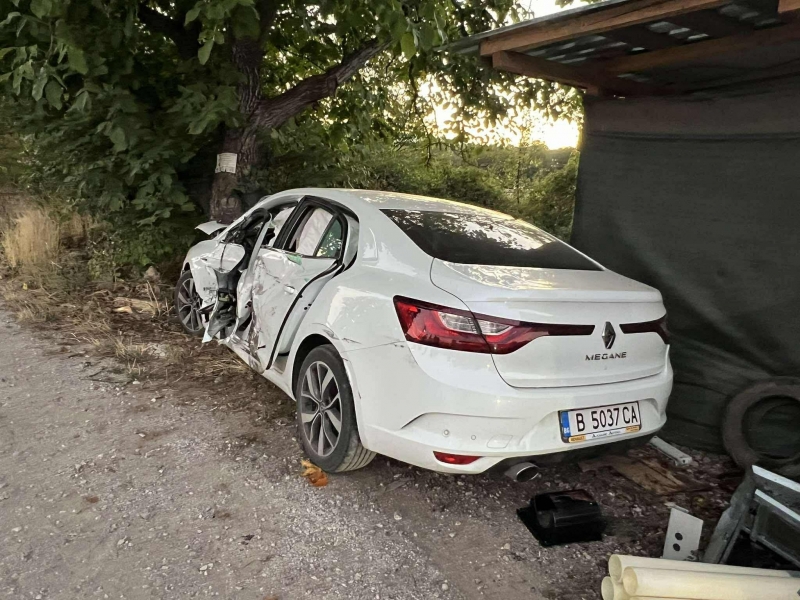 Сблъсъкът бил толкова силен, че колата изхвърчала от пътя и се забила в дърво.