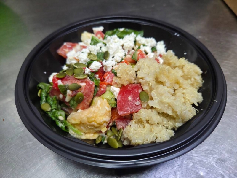В менюто има азиатски предложения, като поке купа, един от дните то е вегетарианско, а в друг е включена риба.