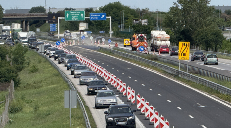 Продължават ремонтите по автомагистрала "Тракия", които затрудняват движението в Област София, Пазарджик и Сливен. В три участъка движението се извършва само в платното за столицата, като там е разрешено движението и в аварийната лента.