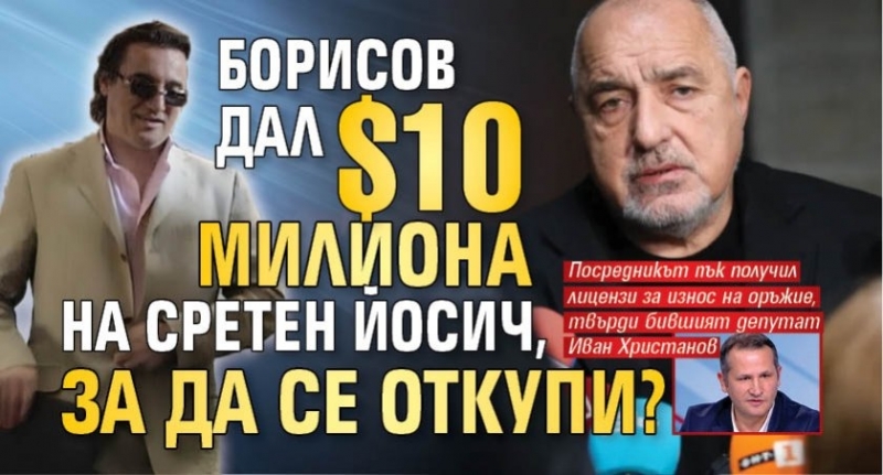 „През 2019 до мен достигна информация, че Борисов е дал 10 милиона долара за среща със Сретан Йосич. Целта на самата среща е била да се откупи от смъртната присъда, закована на челото му от боса на сръбската мафия“, пише в поста си Христанов и добавя, че „освен тези 10 милиона долара, посредникът е получил и лицензи за износ на оръжие.“