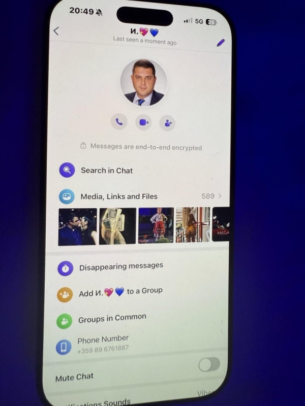В социалните мрежи се появиха кадри от чат кореспонденция, за която се твърди, че е между певицата и русенския общински съветник Иво Пазарджиев. В разговорите двамата обсъждат както лични отношения, така и теми, които пораждат въпроси около начина на живот на младия политик.