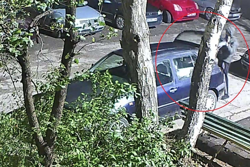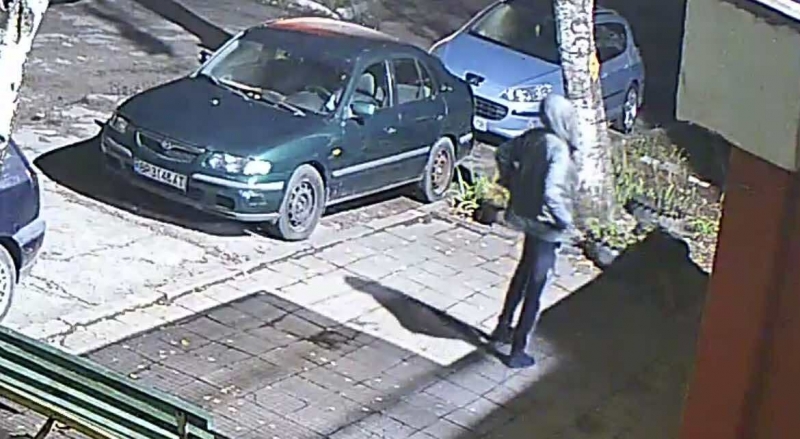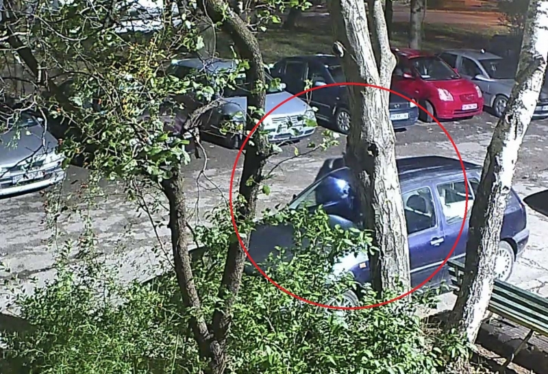Читател на медията ни изпрати видео от камера за видеонаблюдение, на което ясно се вижда как неизвестен към момента мъж с качулка обикаля „Фолксваген Голф“. Мъжът е на видима възраст между 35 и 40 години. Изнервено палейки цигара първо започва да се оглежда дали някъде в блока свети тераса, апартамент или прозорец и когато вижда, че няма никой, който да го види, застава пред автомобила и се кани да го отвори.