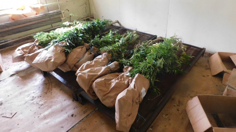 След сигнала е извършено претърсване, като са намерени и иззети мокри зелени тревисти маси канабис и мокри връзки от стръкове канабис с общо тегло 4.225 кг.