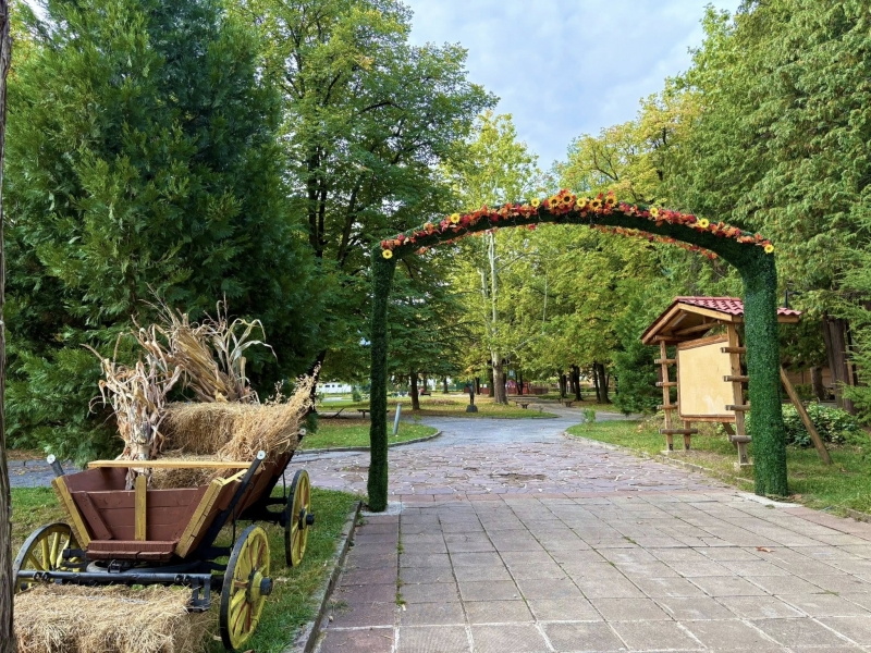 А пред входа на Слънчевата градина има поставена арка, която също грее в красиви есенни багри и е готова да стане част от снимките на преминаващите.