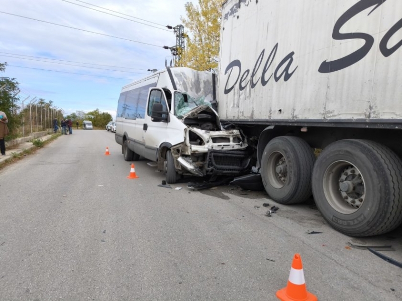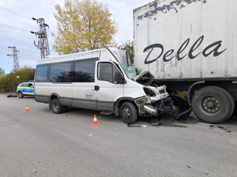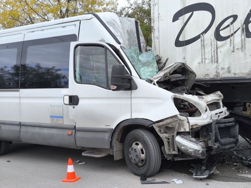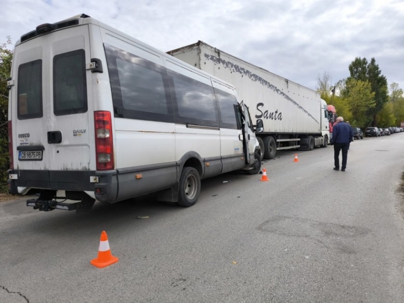 По информация на СДВР бус с пътници се е блъснал в ремаркето на спрял камион. Изясняват се причините за катастрофата.