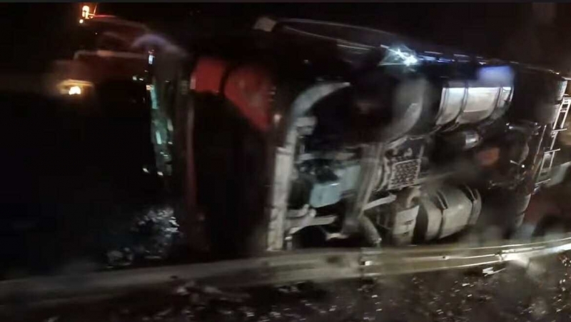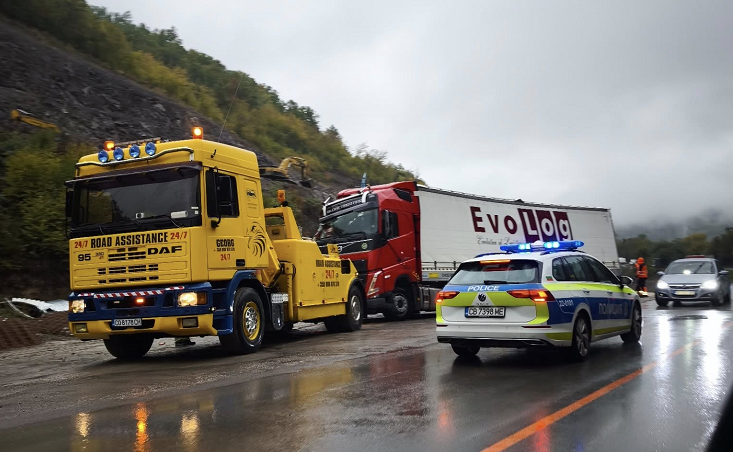 Инцидентът е станал около 6 часа тази сутрин, на стеснената отсечка в района на Лютидол. Турската тежкотоварна машина е пътувала в посока София, когато, по неясни към момента причини, шофьорът загубил контрол над управлението ѝ и тя се обърнала.