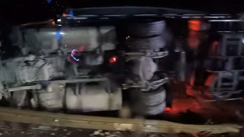 Към момента няма данни за състоянието на водача. Вследствие на инцидента обаче са нанесени огромни материални щети по камиона.